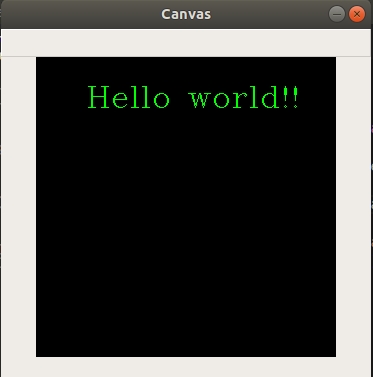 cv2.putText(canvas, "Hello world!!", (50,50), cv2.FONT_HERSHEY_COMPLEX, 1, (0,255,0),1 )