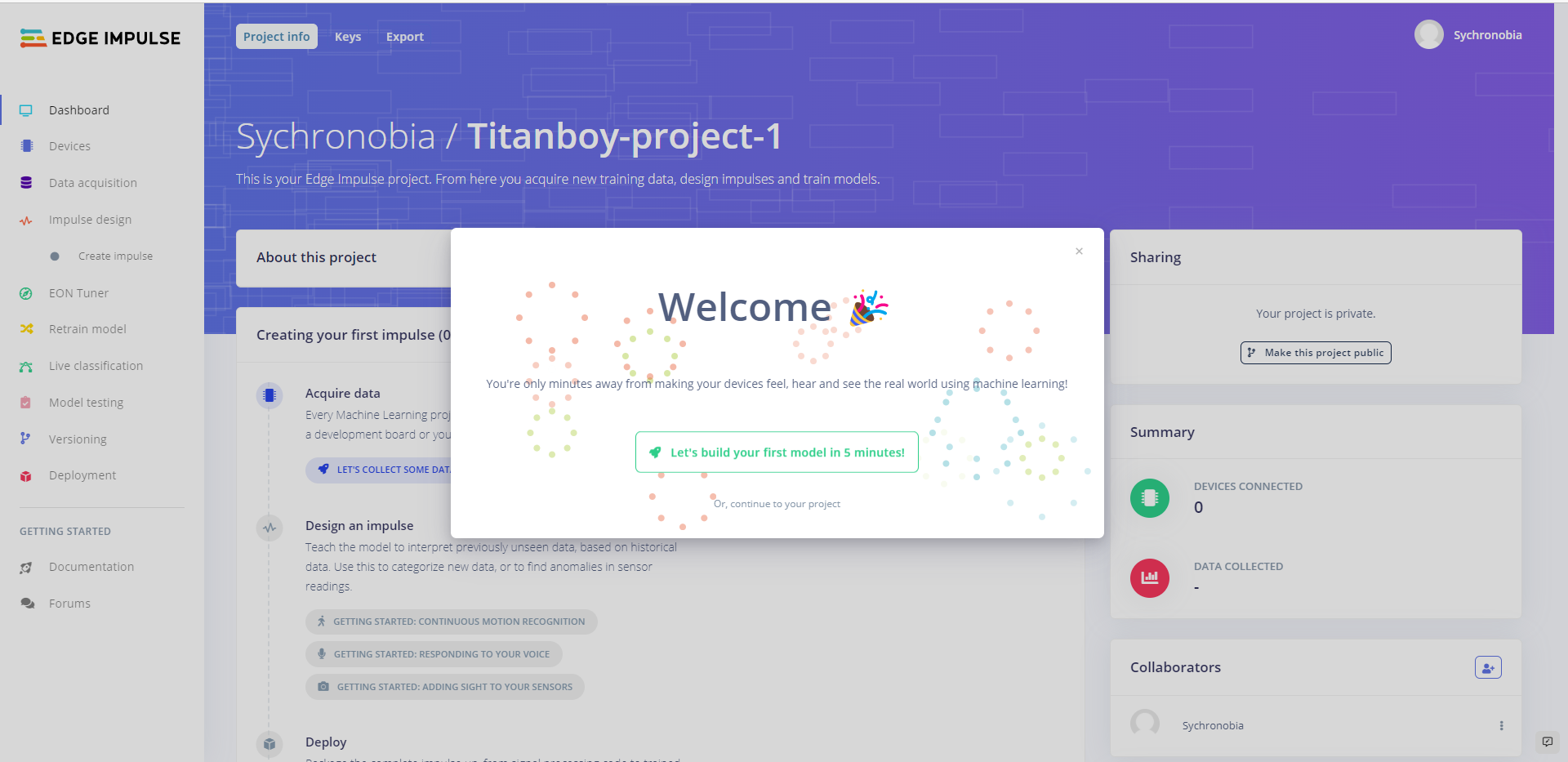 สมัครสมาชิกเว็บ Edge impulse
