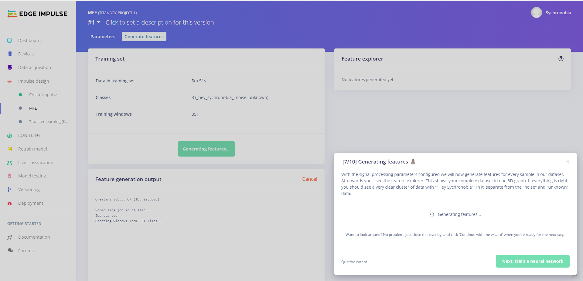 กด Generate feature เพื่อทำการสร้าง input node ในการเตรียมพร้อมที่จะทำการเทรน