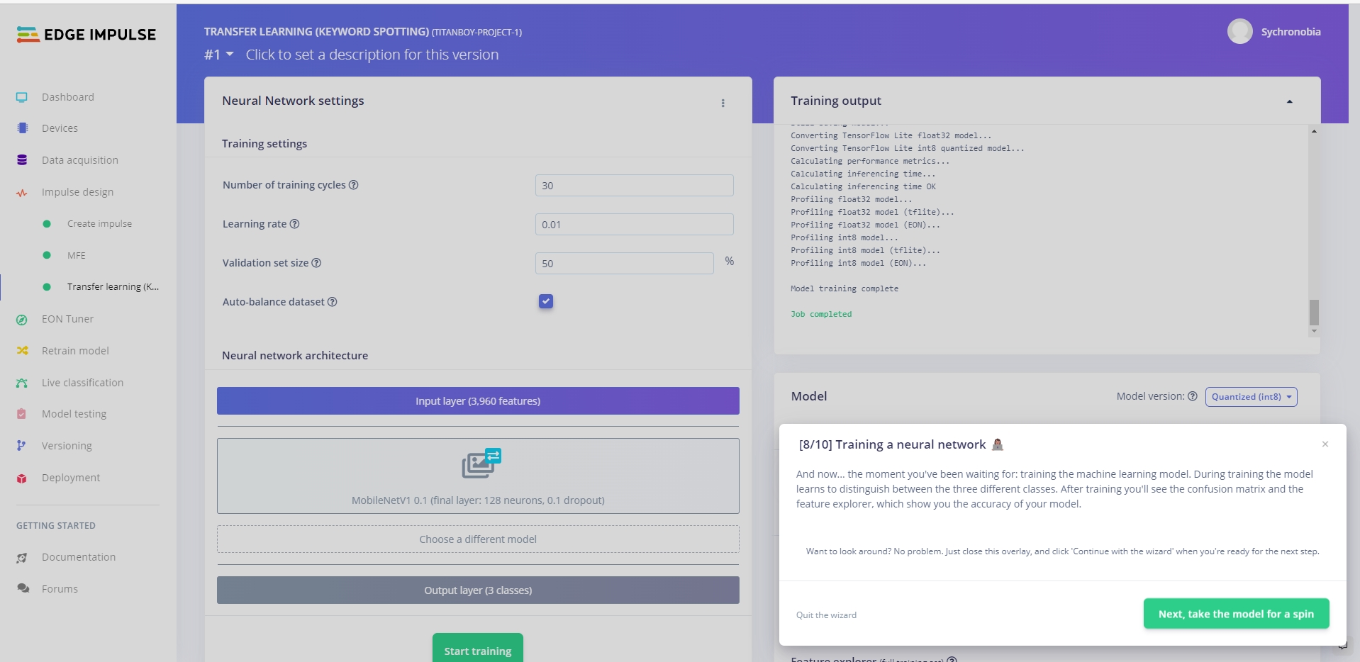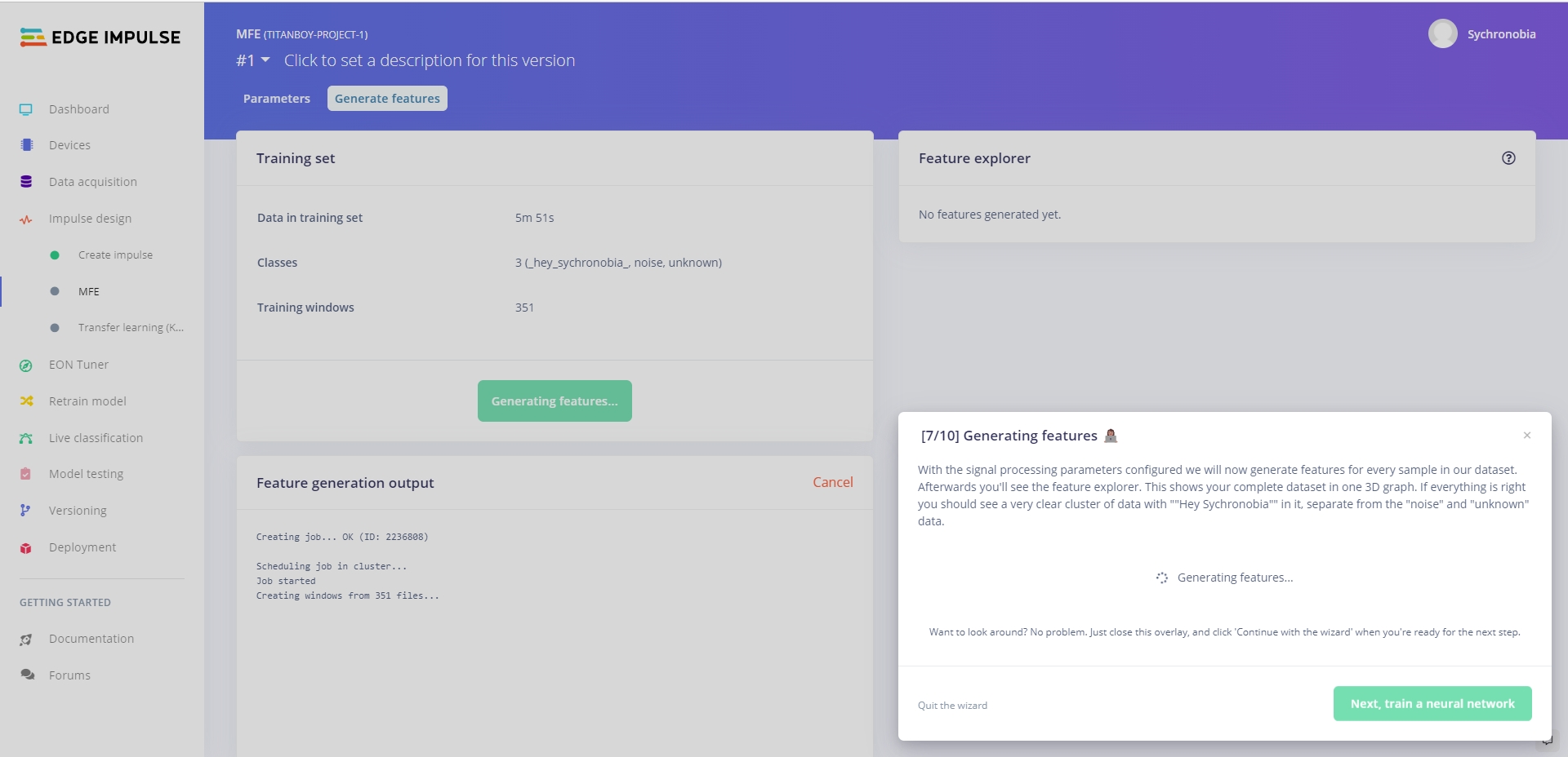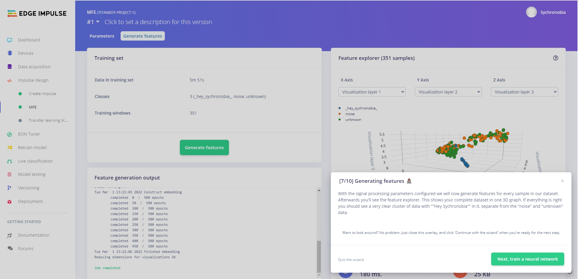 - กด Generate feature เพื่อทำการสร้าง input node ในการเตรียมพร้อมที่จะทำการเทรน