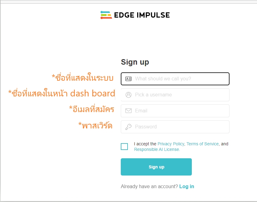 - สมัครสมาชิกเว็บ Edge impulse