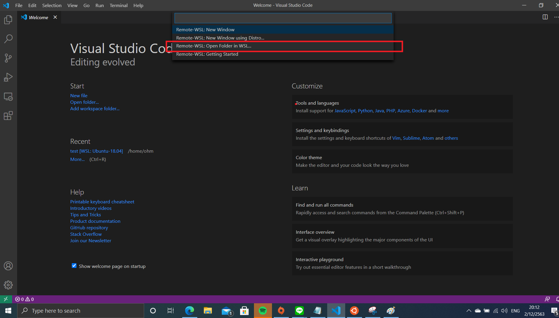 การเชื่อมต่อ Virtual studio code เข้ากับ WSL