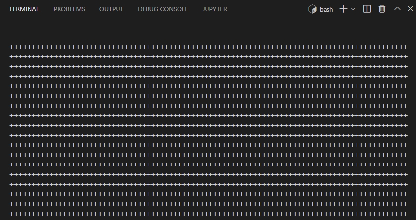 จากผลการรันจะเห็นได้ว่า โปรแกรมที่เราเขียนนั้นจะทำการแสดงผลเพียงแค่เครื่องหมาย “+” เท่านั้น เพราะเงื่อนไข loop while ในโปรแกรมนั้นมีค่าเป็นจริงตลอด ทำให้โปรแกรมที่เราอยากให้รันได้ใน loop ที่สองนั้นไม่ทำงาน