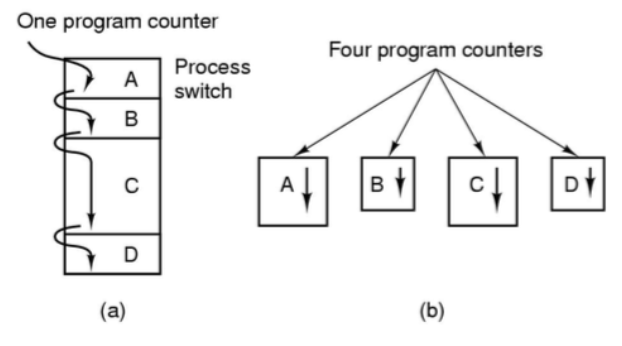<figure><img src="https://1856353139-files.gitbook.io/~/files/v0/b/gitbook-x-prod.appspot.com/o/spaces%2F-MClo3nC-1US0rbK8Qau%2Fuploads%2FaUgNDm4vSDRSbhpM9z6s%2Fprogram_counter.png?alt=media&#x26;token=259e06f5-c86b-48ce-992c-bf1213a5a7cf" alt=""><figcaption><p><em>การทำงานตามลำดับและแบบขนานของโปรเซส</em></p></figcaption></figure>