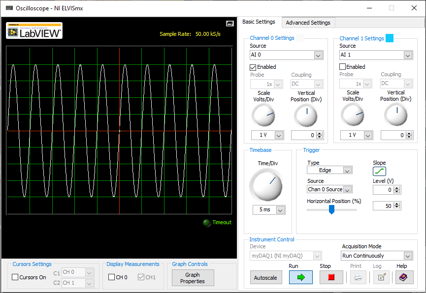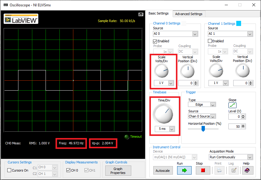 ตัวอย่าง Oscilloscope แสดงสัญญาณที่ได้จาก Function generator