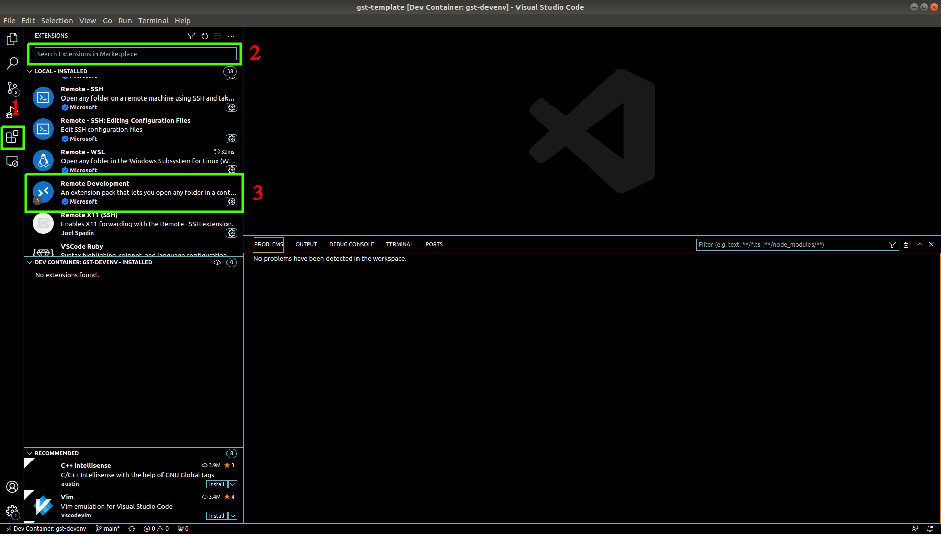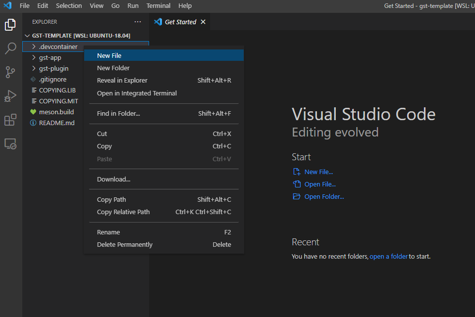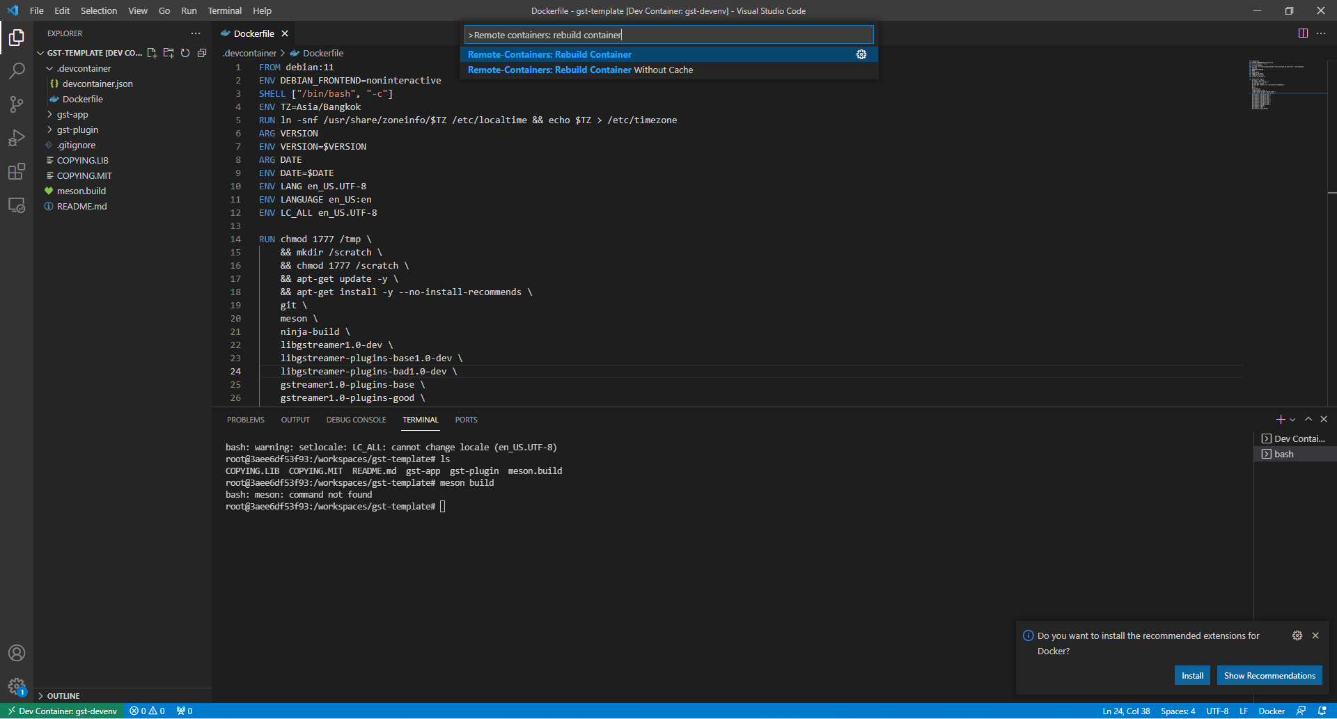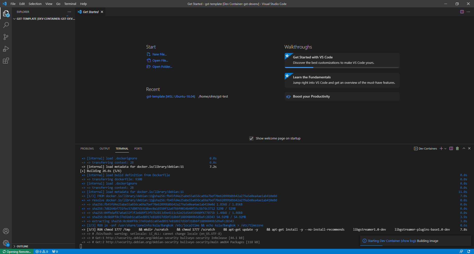 4. After open the cloned gst-template, we will create the devcontainer for custom docker environment.
