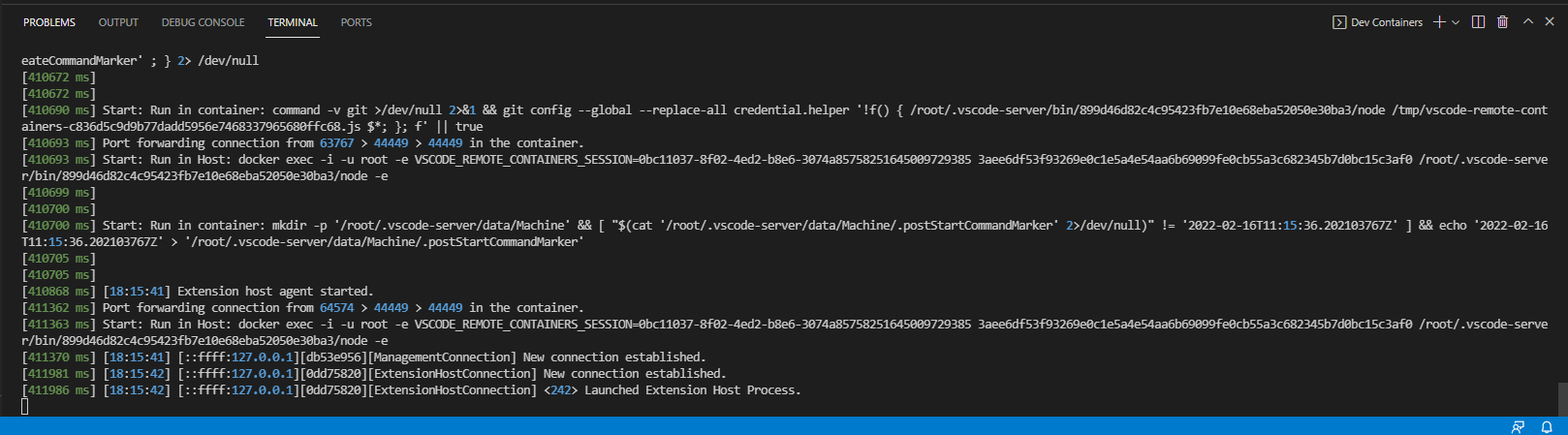 7. After Success process, That’s will show on below figure, Press the Ctrl + Shift + ` for enter to docker terminal