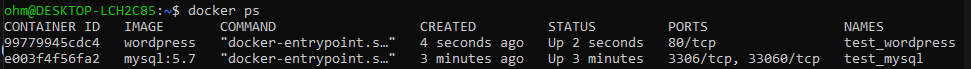 $ mkdir -p Docker_OS_part2/database_<STUDENT_ID>$ docker run --name <name_database_container> -v Docker_OS_part2/database_<STUDENT_ID>:/var/lib/mysql -e MYSQL_ROOT_PASSWORD=<Your password> -d mysql:5.7$ docker ps