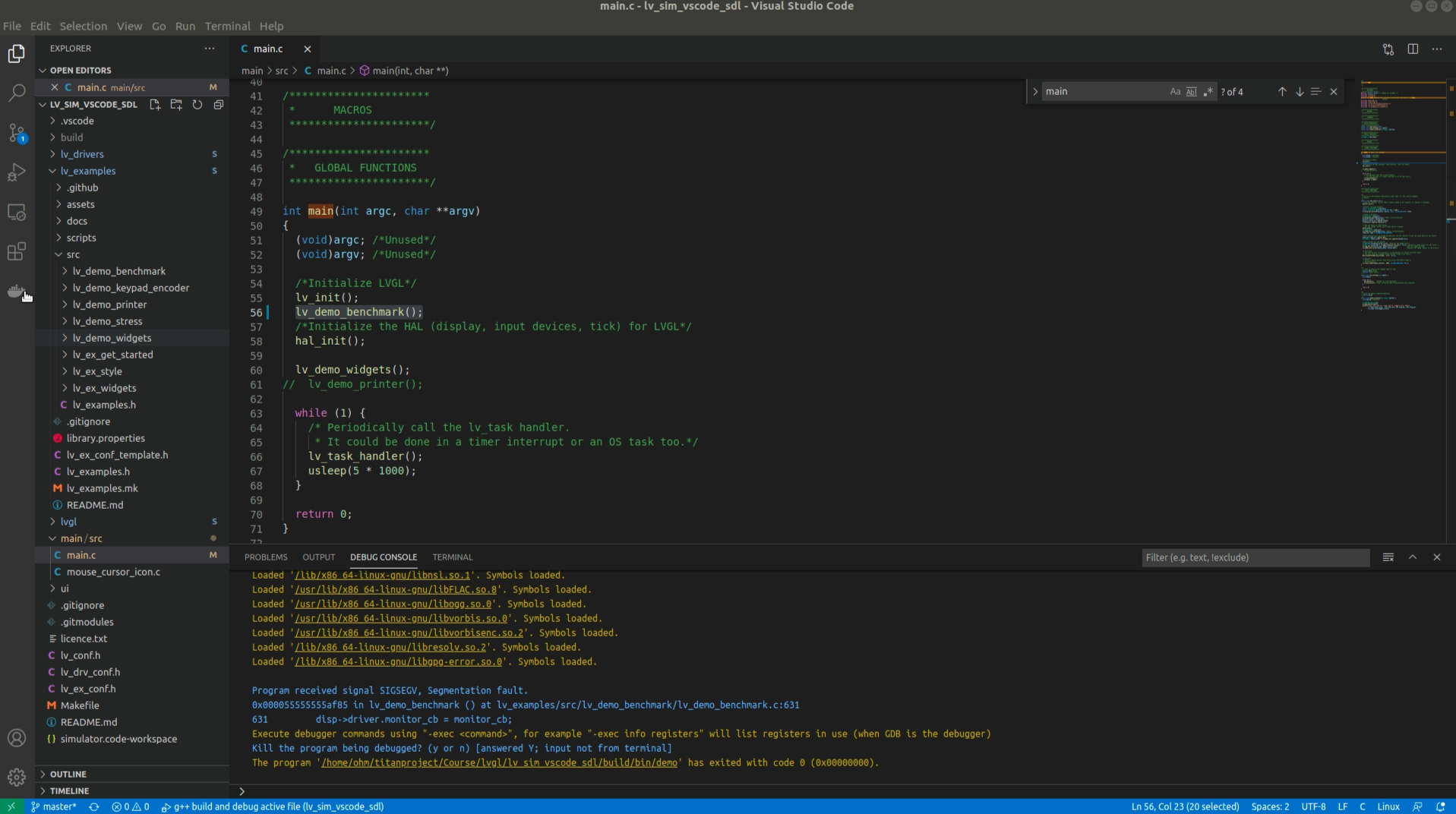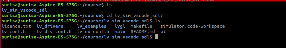 $ code .$ sudo apt-get update && sudo apt-get install -y build-essential libsdl2-dev$ git clone --recursive https://github.com/lvgl/lv_sim_vscode_sdl$ ls