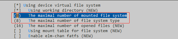 Note: If multiple file systems are used in the same system, pay attention to modify the values of the number of mountable file systems and the number of file system types on the same interface to support multiple file systems.