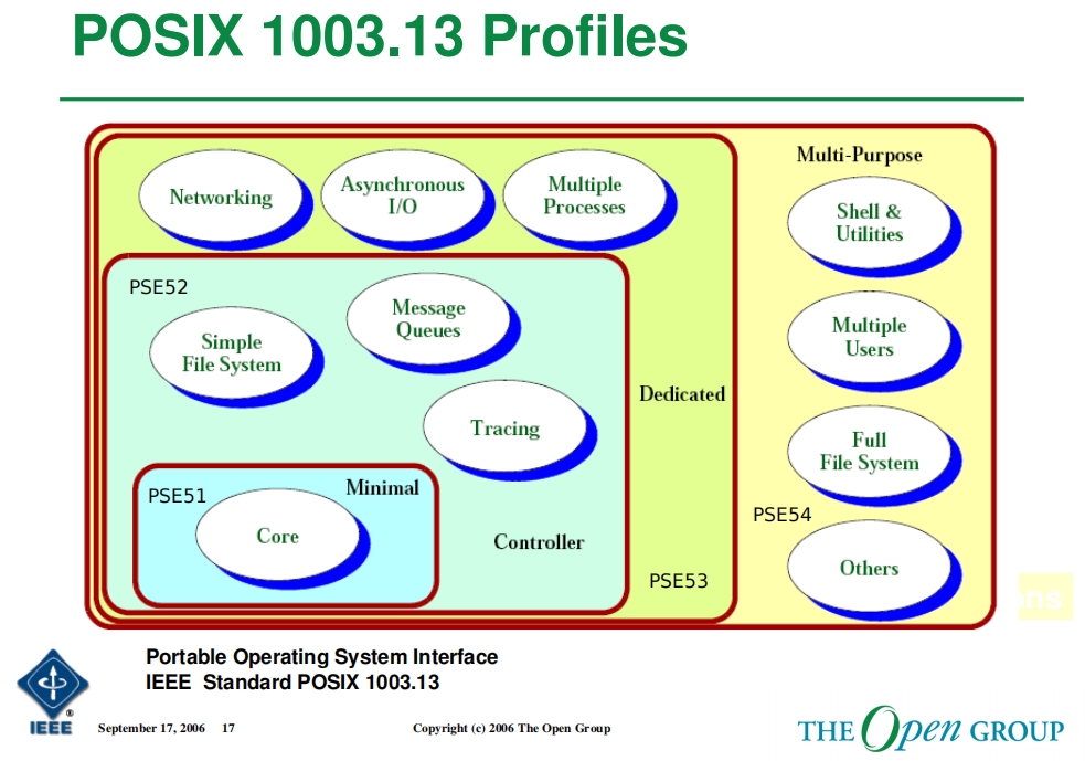 Minimal Real-time System Profile IEEE Std 1003.13 PSE51, basic RTOS
