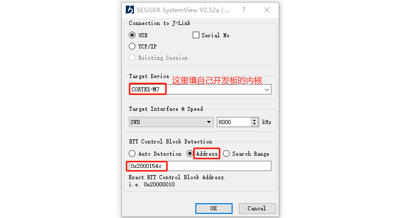 Because SystemView uses J-Link's RTT technology for data transmission, SystemView can only be used when the development board is connected with J-Link.