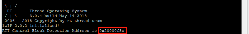 The address of the RTT control block in the figure has been printed out through the serial port. Just open the terminal software and copy the printed address above.