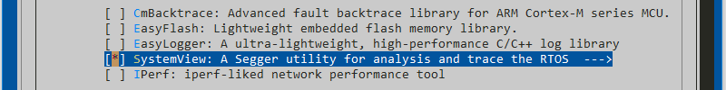 Use the up and down keys to select RT-Thread online packages, press Enter to enter the sub-menu, and then open SystemView in tools packages.