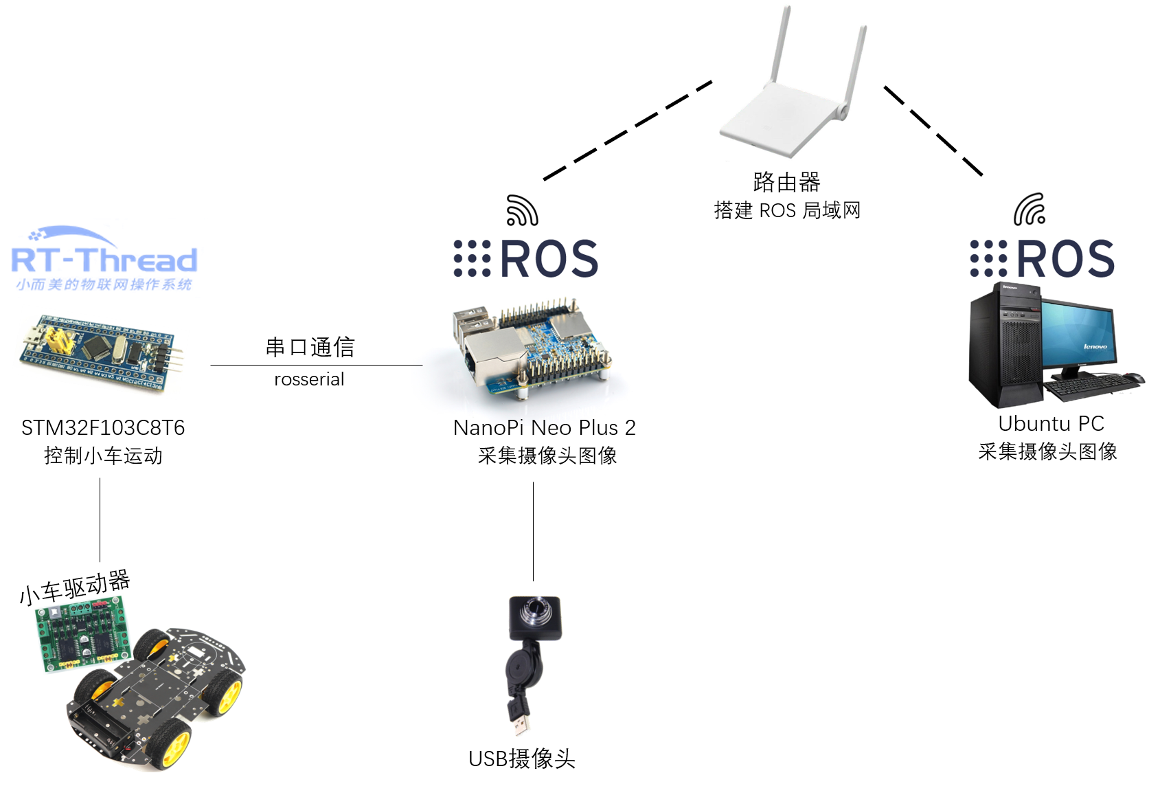 This document will introduce how to use RT-Thread and ROS to connect to realize a remote control car with a camera.