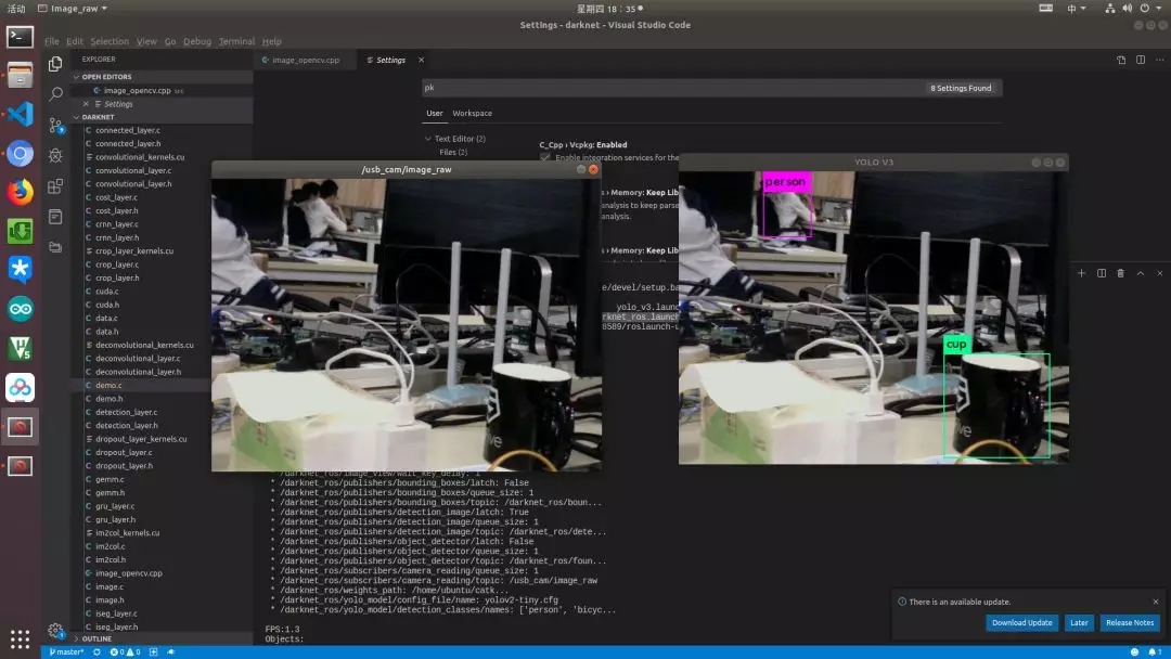 The following will introduce how to use the image information published by ROS and the Darknet connection for target detection.
