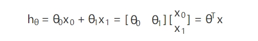 So θ0 corresponds to b, and θ1 corresponds to k. However, this representation model is not general enough. For example, x may not be a one-dimensional vector. For example, in the classic house price prediction, we need to know the house price, which may require many factors such as the size of the house and the number of rooms. Therefore, the above is represented in a more general way: