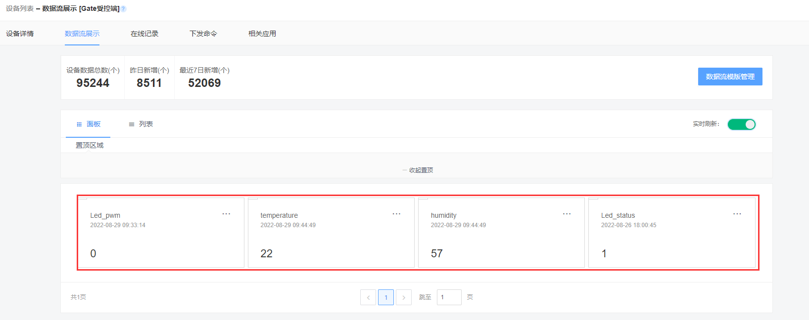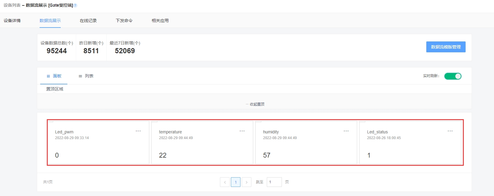 2. View the real-time refreshed data on the device debugging page of the cloud platform.