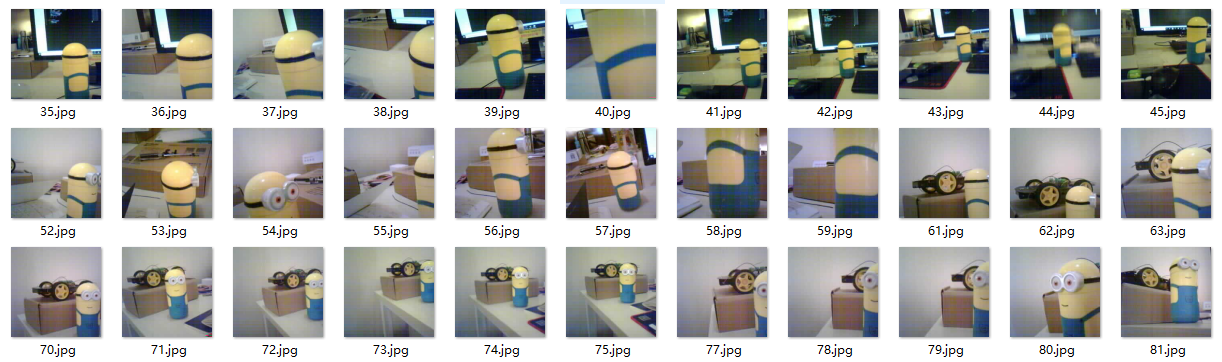 Actually, taking photos is just taking some photos that contain the objects you want to recognize. Take photos from all angles and distances. This is very important!!! For example, if you want to recognize only half of the Minions, then there must be such examples in the photos you take. Here are the 300 photos I took: