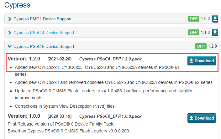Cypress-PSoC6the chip support package is not installed, it will prompt you to install it online. Just follow the prompts to install it. If there is a network problem, you can go to the Keil official website to download the installation package and install it offline.