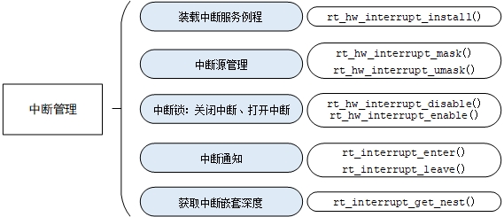 In RT-Thread interrupt management, the interrupt handler is divided into three parts: interrupt leader, user interrupt service program, and interrupt follow-up program, as shown in the following figure: